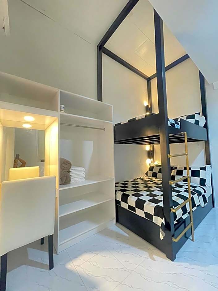 The dormitory room provides air conditioning and heating, as well as a shared bathroom featuring a shower. The unit offers 10 beds.